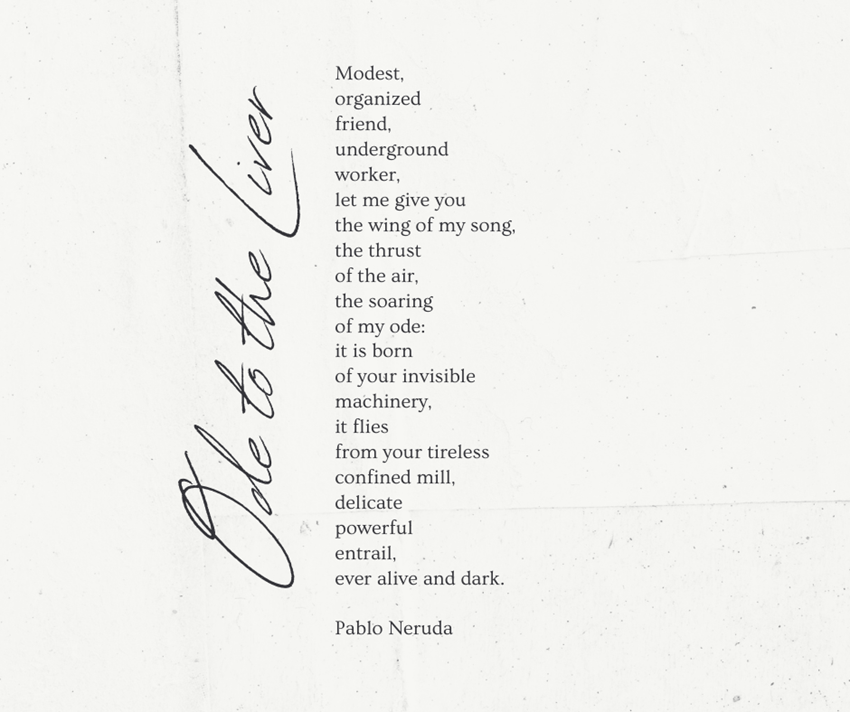 Joshua: Hey Lili, you know, as a scientist I’ve been diving into some of the unsung heroes of our bodies. And do you remember Pablo Neruda’s “Ode to the Liver”?
